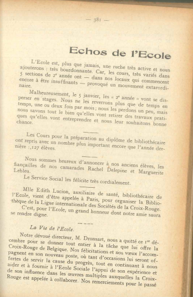 PH-0008 "Echos de l'école" est une rubrique de la revue "Le Service Social", qui est le bulletin de l'Ecole centrale de Service social et de l'Office central d'Identification des œuvres. L'Ecole centrale de Service social est la toute première école de service social belge, créée en 1920, c'est le premier nom que va porter l'IESSID. "Echos de l'école" est en quelque sorte sa Newsletter, on y retrouve des nouvelles des étudiants, de l'école, des diplômés, des professeurs,...