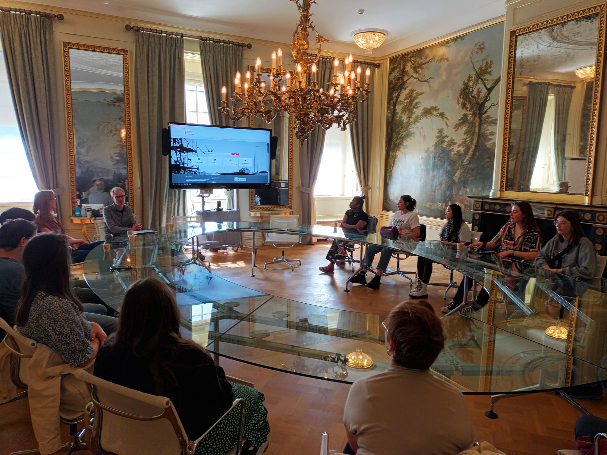 IV-0018 Les étudiants en deuxième année de bachelier bibliothécaire documentaliste en 2022 assistant à une présentation aux archives de la ville d'Amsterdam lors de leur voyage de STIC.