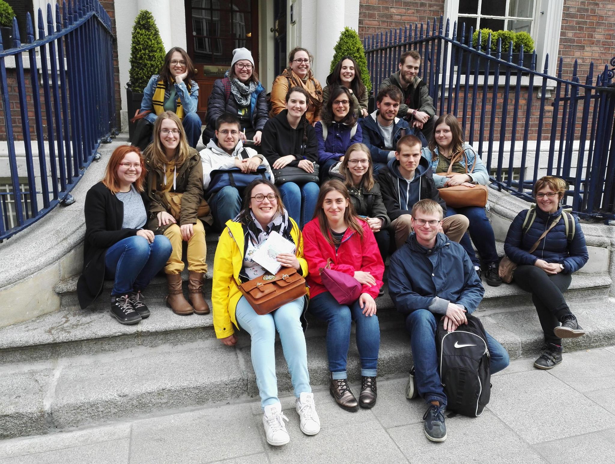 IV-0015 Les étudiants en deuxième année de bachelier bibliothécaire documentaliste en 2018 à Dublin après leur arrivée pour leur voyage de STIC accompagné de Edith Deneulin.