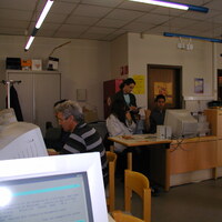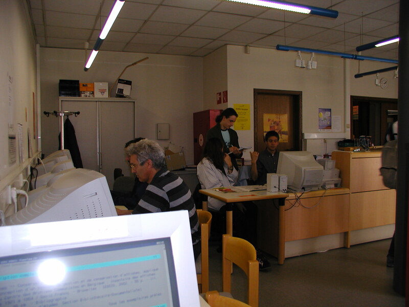 Bibliothèque de l'IESSID rue de l'abbaye. Personnes travaillant sur des ordinateurs, seules ou en groupe.