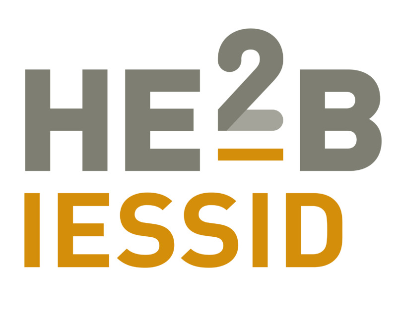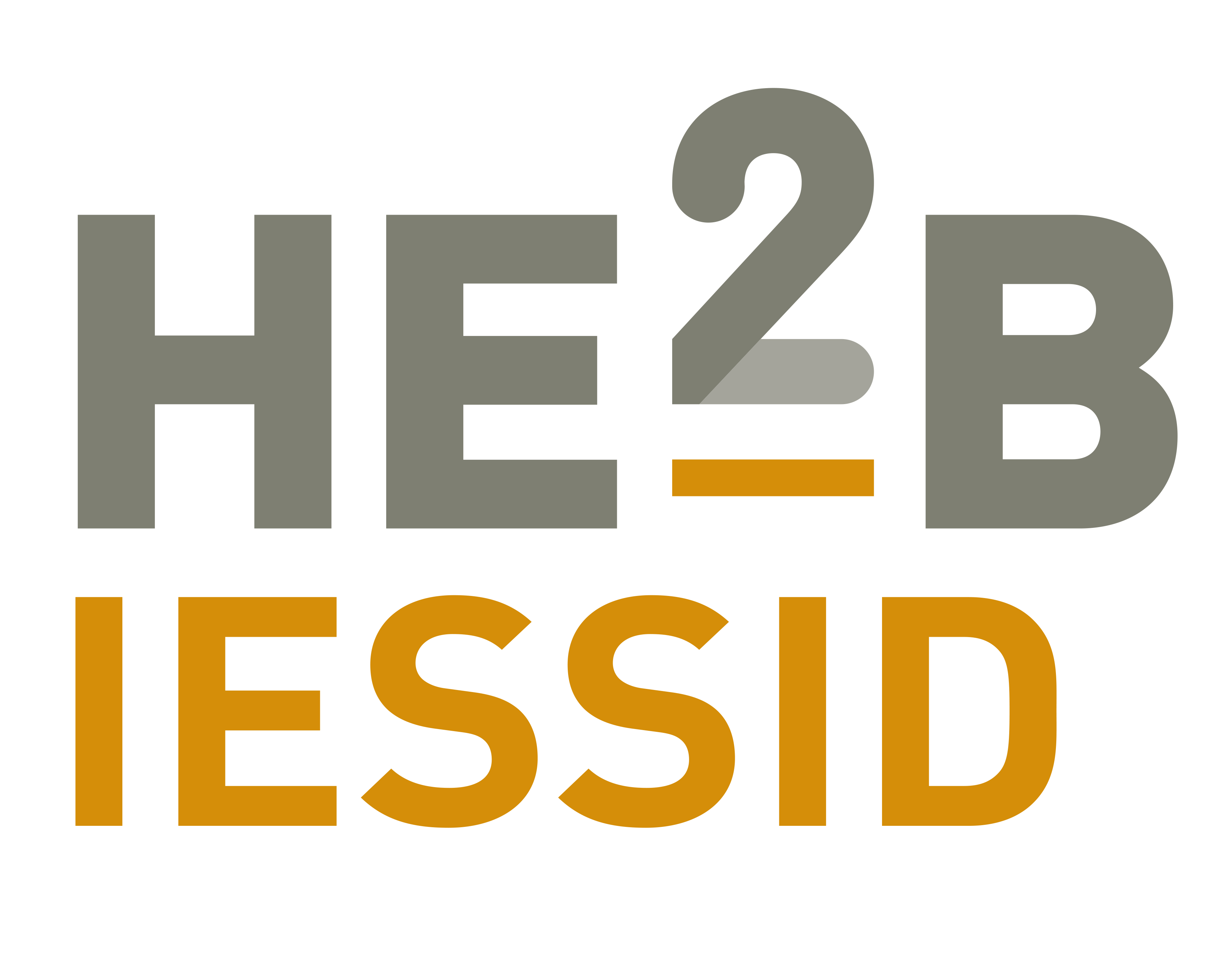 Logo de l'IESSID. HE2B en grosse lettre grise avec le 2 souligné en orange. En dessous, IESSID en lettres majuscules orange.