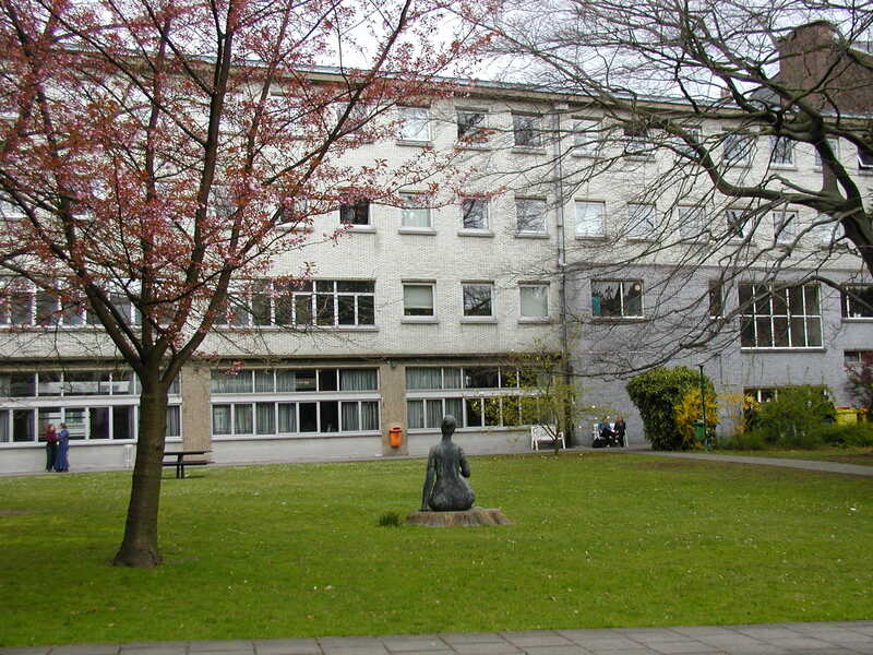 Jardin de l'IESSID et de la statue de femme vue de dos en octobre 2002.