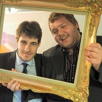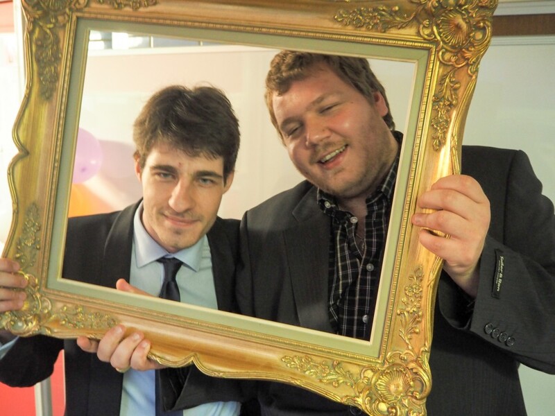 Deux élèves ; François-Xavier Van Caulaert et Arnaud Seeuws (promo 2011) à l'occasion de la fête des 50 ans (2014).