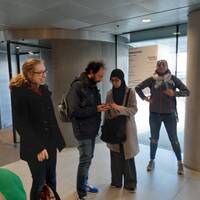 - Étudiants et professeur visitant un établissement pendant un voyage scolaire.
