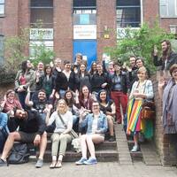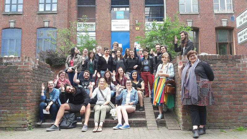 Les étudiants en deuxième année de bachelier bibliothécaire documentaliste en 2017 à Lille devant la délégation de la région du Nord de l'Institut national de l'audiovisuel (INA)