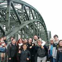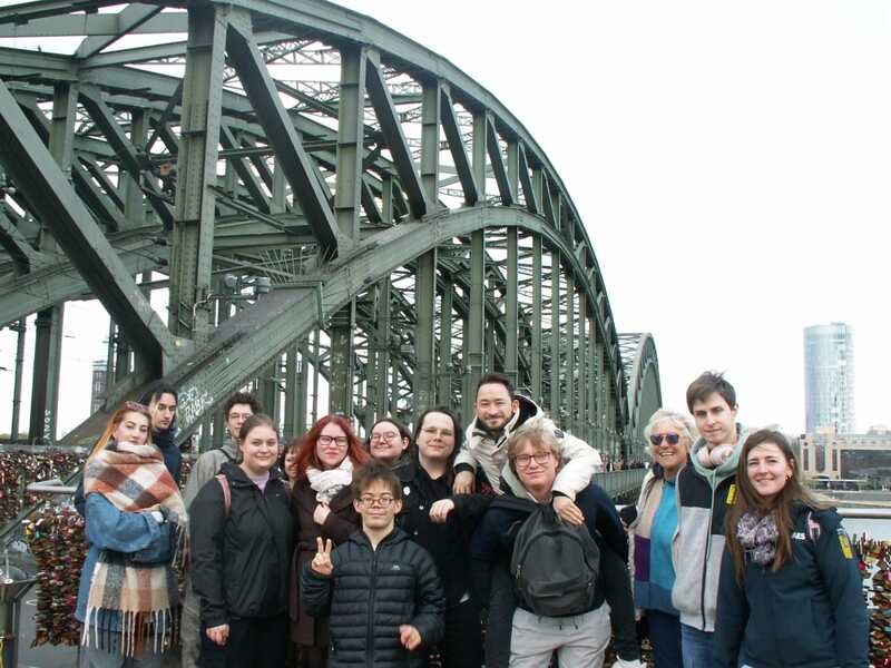 Les étudiants de deuxième année BD lors de leur voyage à Cologne en 2024 accompagné de leur professeur d'anglais Michèle Laurent lors de la visite de monuments la première journée du voyage.
